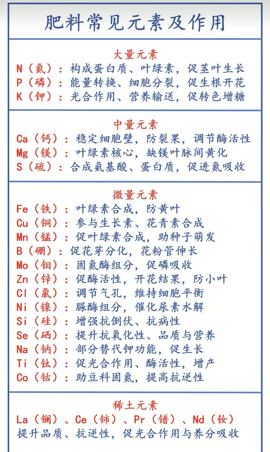 肥料常见元素和作用。