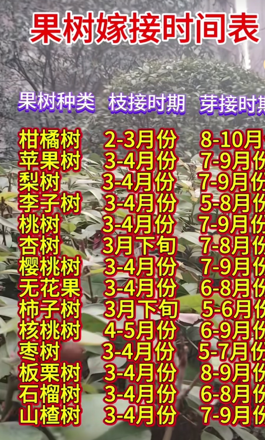 最佳嫁接时间:枝接选2-3月萌芽前,芽接选9-10月秋梢老熟后